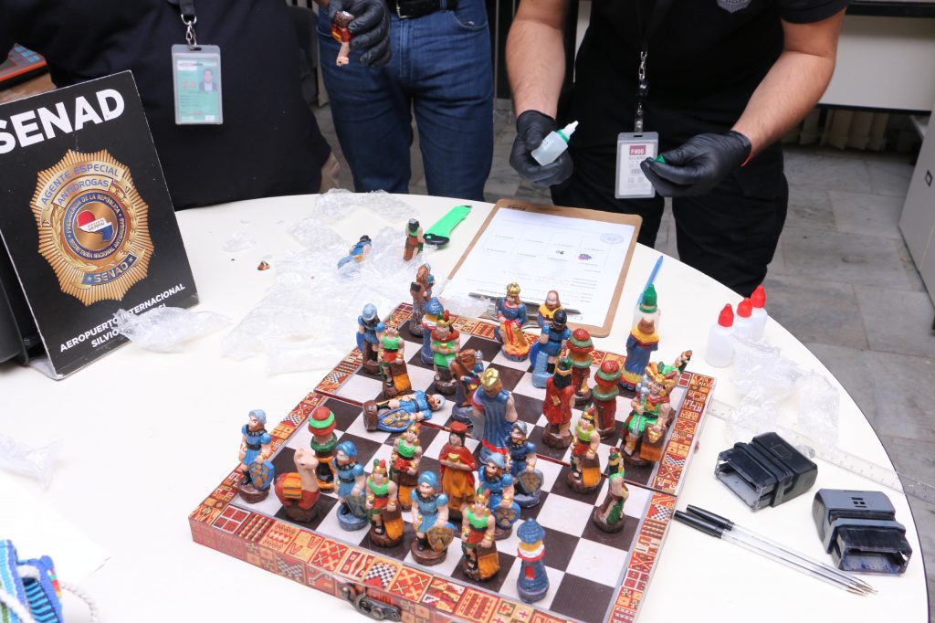 La encomienda, remitida desde Asunción con destino a Alemania, contenía una caja con un tablero de ajedrez y 34 figuras de cerámica de diseño artesanal boliviano, cada una con carga oculta de cocaína.