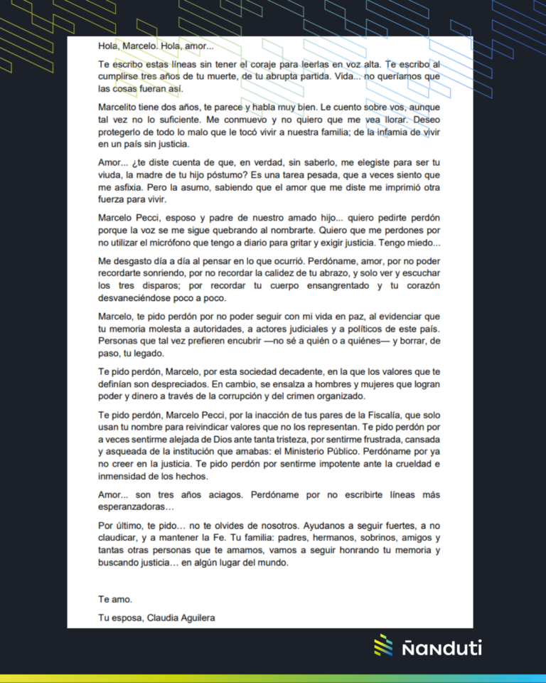 “Gracias por no olvidar. Este crimen impactó a Paraguay y al mundo”, dijo.