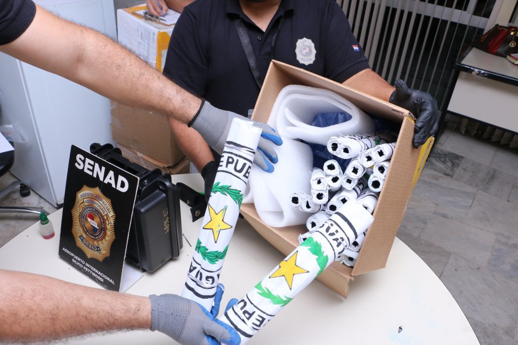 El paquete, remitido desde Asunción y con destino final en Hong Kong, fue retenido en el Aeropuerto Internacional Silvio Pettirossi tras la alerta de un can detector de drogas, en el marco de controles conjuntos con la Dirección Nacional de Ingresos Tributarios (DNIT) y la Dirección Nacional de Aeronáutica Civil (DINAC).
