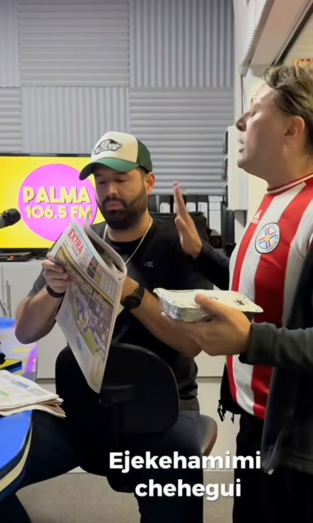 El carismático Héctor Ramos protagonizó un momento épico en Radio Palma, sorprendiendo al conductor Bicho Riveros con sus famosas marineras de pollo. Fiel a su estilo provocador, Ramos entró al aire diciendo en guaraní: “Te estás quejando de mí, por eso te traje marinera de pollo.”