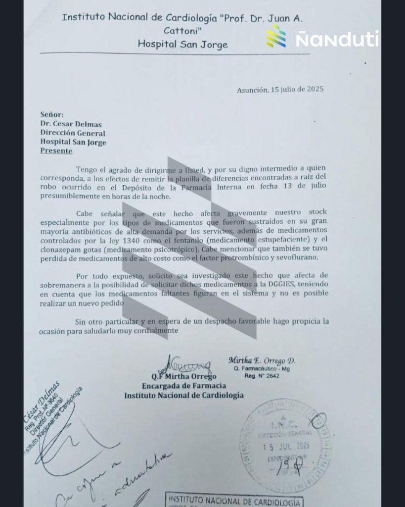 En charla con la radio 1020 AM, el director del Hospital San Jorge, el Dr. César Delmás, recibió una planilla con diferencias llamativas, tras un presunto robo al depósito de la farmacia interna, el cual habría ocurrido el pasado 13 de julio en horas de la noche.