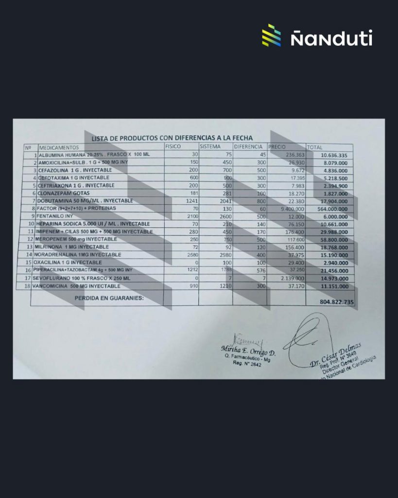 Además de las 500 dosis de fentanilo, en el documento se pueden apreciar otras inconsistencias millonarias en medicamentos como el clonazepam y otros insumos.