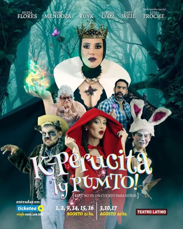 La puesta en escena, dirigida por Luis Troche, reinventa el clásico cuento infantil en clave de comedia irreverente. En esta versión, Caperucita deja de ser inocente y se convierte en un símbolo de libertad, ironía y picardía. Romina se mete de lleno en este papel principal, mientras Silvia Flores interpreta a una bruja que tampoco sigue los estereotipos. Completan el elenco Dani Vuyk, Sergio Leoz, Dave Weil y el propio Troche, con una participación especial en escena.