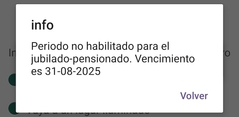 Si el jubilado se encuentra dentro del periodo de 15 días antes de la fecha de vencimiento, estará habilitado para realizar la verificación biométrica de inmediato. Si aún no es el momento, la aplicación le notificará cuando falten esos 15 días.