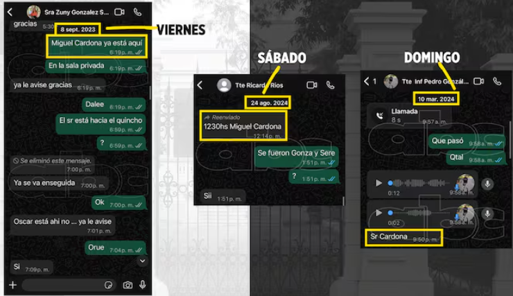 Una imagen publicada por ABC Color confirma las visitas del empresario Miguel Cardona, principal accionista de Comepar S.A., a la residencia presidencial Mburuvicha Roga. Cardona es el mayor beneficiado del programa “Hambre Cero”, impulsado por el presidente Santiago Peña, con contratos que superan los G. 2 billones. Las visitas ocurrieron antes, durante y después del lanzamiento del plan, incluso en horarios nocturnos y fines de semana, según capturas de mensajes entregadas por la exempleada Luz Candado.