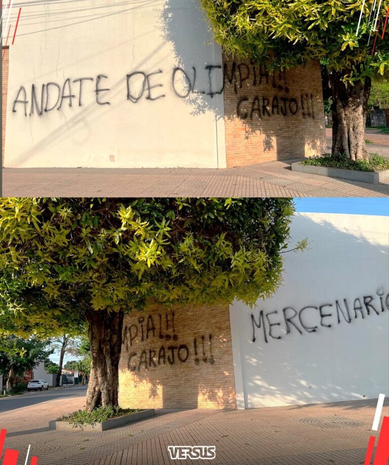 La casa del «capi» sufrió ataques vandálicos y con fuertes mensajes como: Andate de Olimpia caraj… y otro escrito como «mercenario».