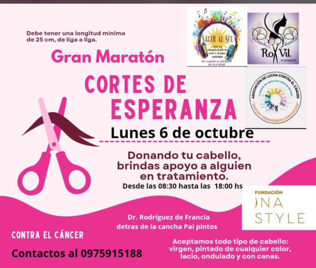 Este lunes 6 de octubre 2025 en un emotivo gesto de solidaridad, Ina Style lleva adelante una campaña que convierte donaciones de cabello en pelucas oncológicas gratuitas para mujeres y niñas que luchan contra el cáncer en Paraguay. https://www.instagram.com/fundacioninastyle?igsh=MW14bHJ0aHEwbDVrag==