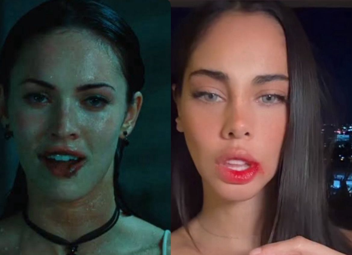 No fue golpeada, no se cayó, no le mordieron… Simplemente, fue el disfraz que ella eligió. Sin mucho, de esa manera aprovechó su parecido a Mega Fox para imitar a la actriz en su celebración del Día de Brujas o Halloween.