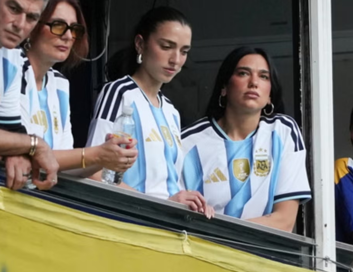 En el estadio La Bombonera repleto con más de 50.000 seguidores, la cantante pop inglesa Dua Lipa apareció luciendo una camiseta de la selección de Argentina.