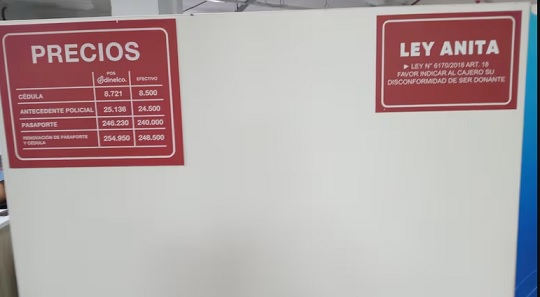 Los costos para pasaporte y cédula