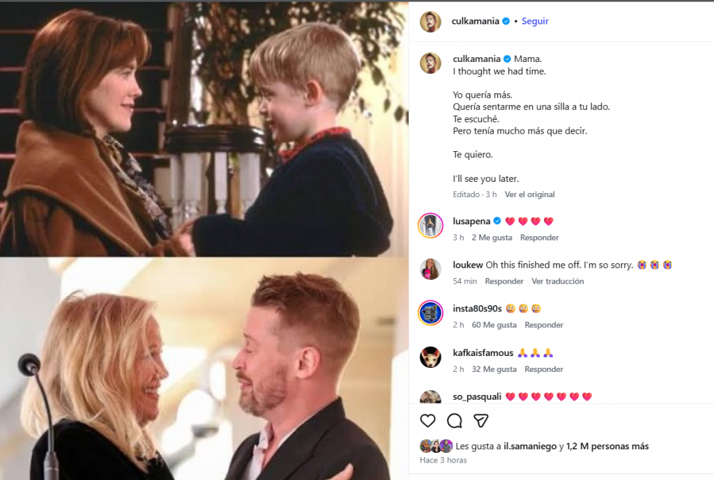 Macaulay Culkin reaccionó a la inesperada muerte de Catherine O’Hara con un emotivo mensaje. «Yo quería más. Quería sentarme en una silla a tu lado. Te escuché. Pero tenía mucho más que decir. Te quiero», fue el homenaje del actor, que hoy tiene 45 años.