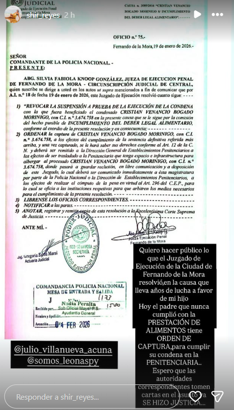 «Torito» tenía una medida de suspensión a prueba de la ejecución de la condena, pero al no cumplir, al no ponerse al día con su hijo, ahora tendría que ir a Tacumbú.