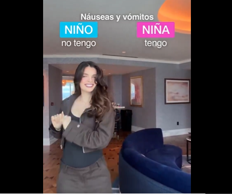 Entre salado y dulce, tiene antojos de lo primero, que también se relaciona más con los niños. En cuanto al humor, dijo que ahí si le da hacia los síntomas relacionados a niñas, que su estado de ánimo es cambiante.