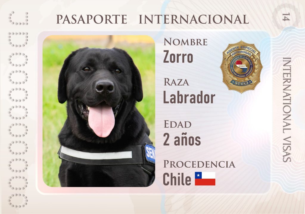 - Zorro: 2 años, raza labrador, color negro y su procedencia es Chile