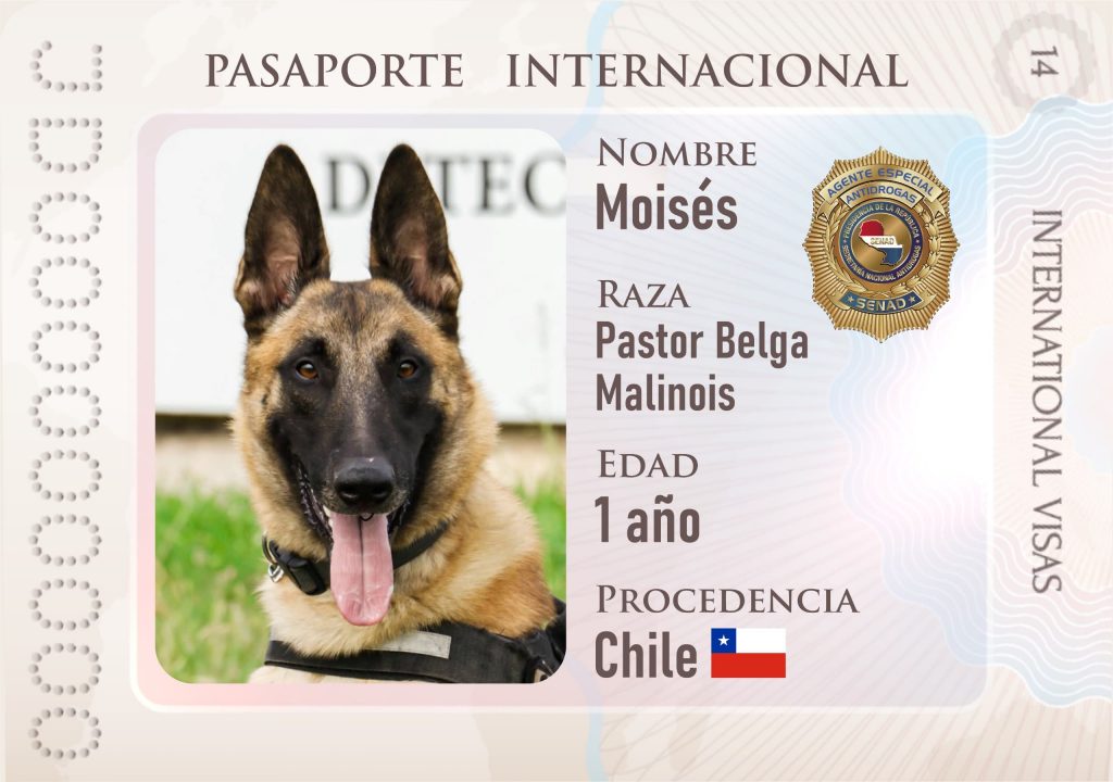 - Moisés: 1 año, raza pastor belga malinois y su procedencia es Chile