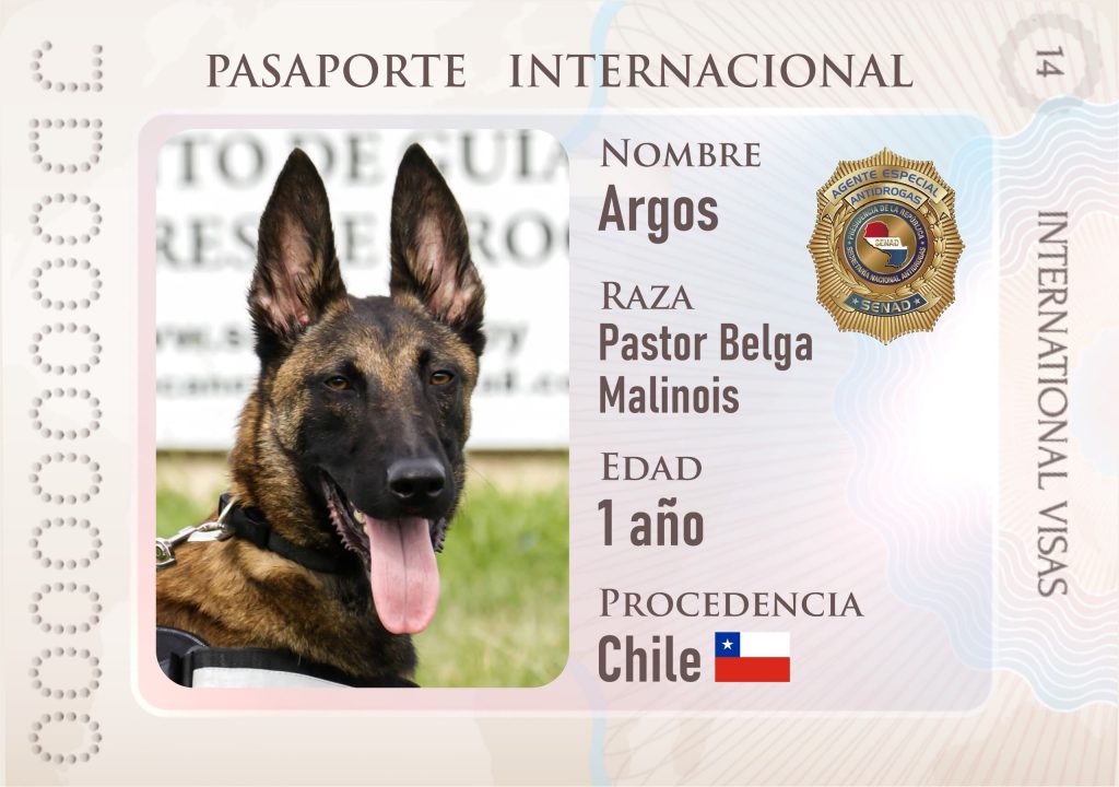 - Argos: 1 año, raza pastor belga malinois y su procedencia es Chile