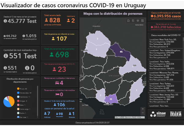 Hasta el momento se han registrado 828 casos positivos confirmados de covid-19 en todo el territorio nacional, y son dos los nuevos casos de esta jornada. De ese total, 698 ya se recuperaron y 23 fallecieron.
